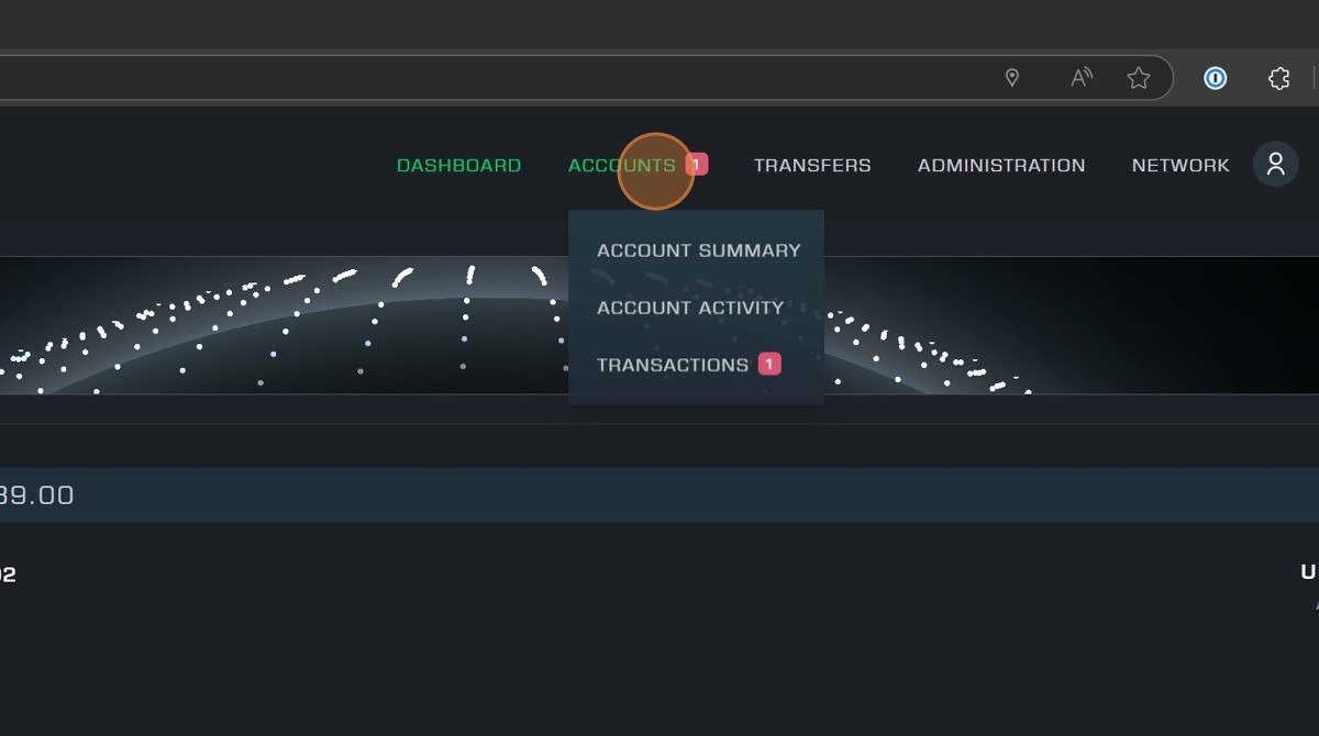 1. Go to the main navigation, and click on "ACCOUNTS"