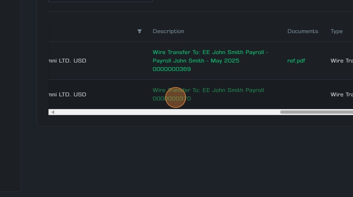 3. Review the list of transactions, and scroll horizontally to the “Description” column