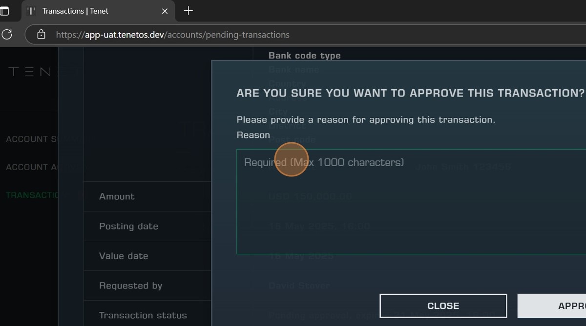 5. Review the transaction. When ready, click on the “APPROVE” button.